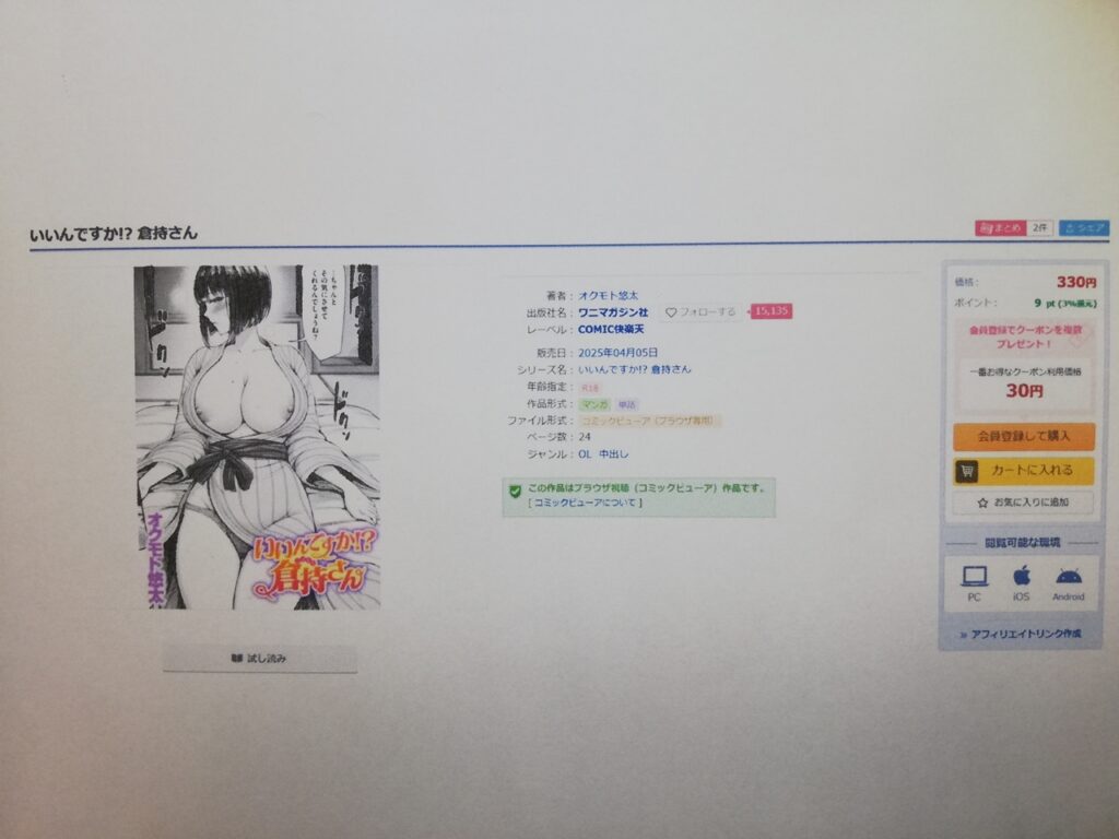 いいんですか!?倉持さんをほぼ無料・タダで読むならDLsiteで!