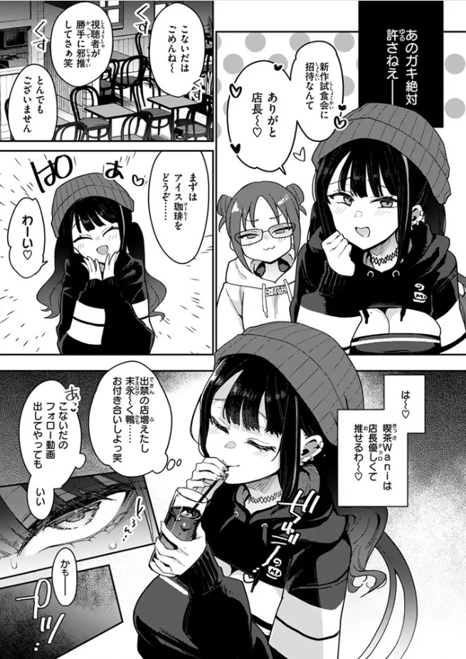 自分の影響力を武器に、馴染みのカフェで粗暴なふるまいをしていたメスガキがコテンパンにされます。