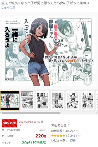 『旅先で仲良くなった子が男と思ってたら女の子だった件!!EX』をほぼ無料、少しでも安くで読むならDLsiteがおすすめ!
