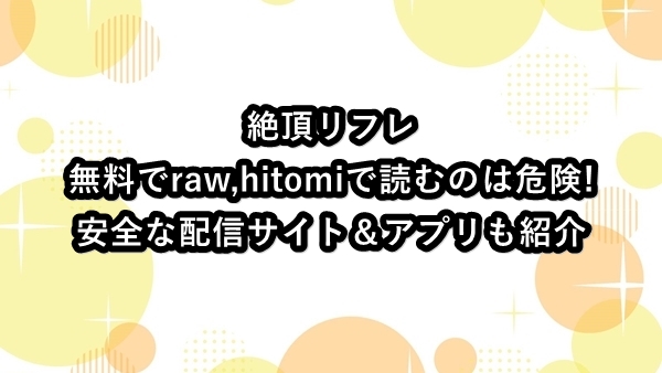 絶頂リフレを無料でraw,hitomiで読むのは危険!安全な配信サイト&アプリも紹介